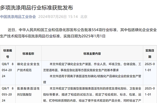 多(duo)項(xiang)洗滌用(yong)品(pin)行業标準獲批(pi)髮(fa)布
